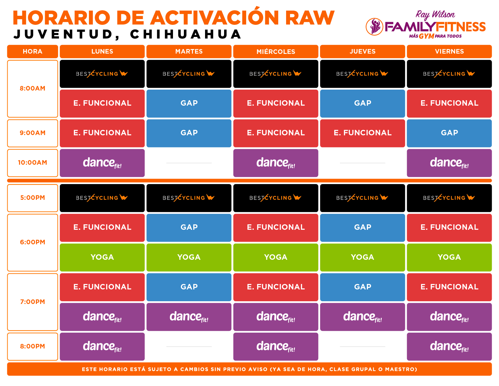 Este horario está sujeto a cambios sin previo aviso (ya sea de hora, clase grupal o maestro)